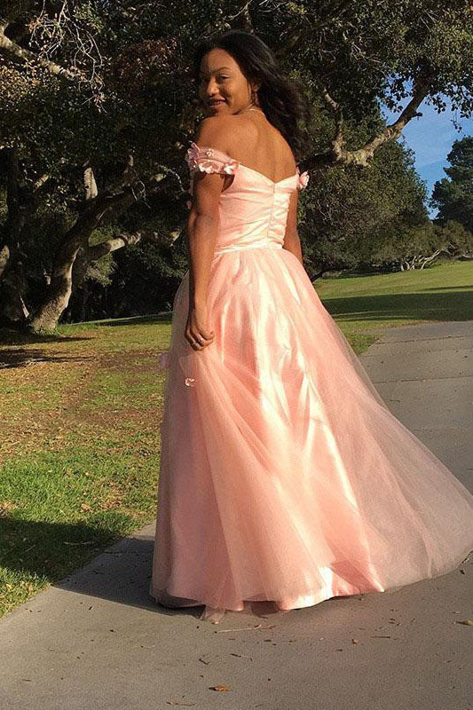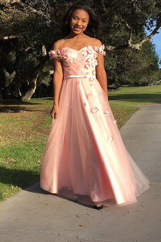 A Line Off Shoulder Pink Applique Evening Prom Dress Sweet 16 Dress OK1085