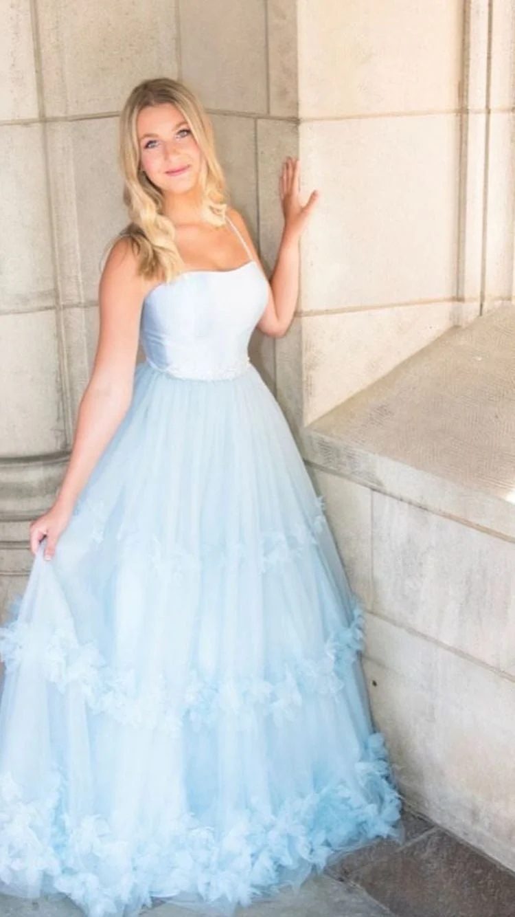 • A Line Tulle Sky Blue Long Prom Dress Princess Formal Evening Dress OK1256