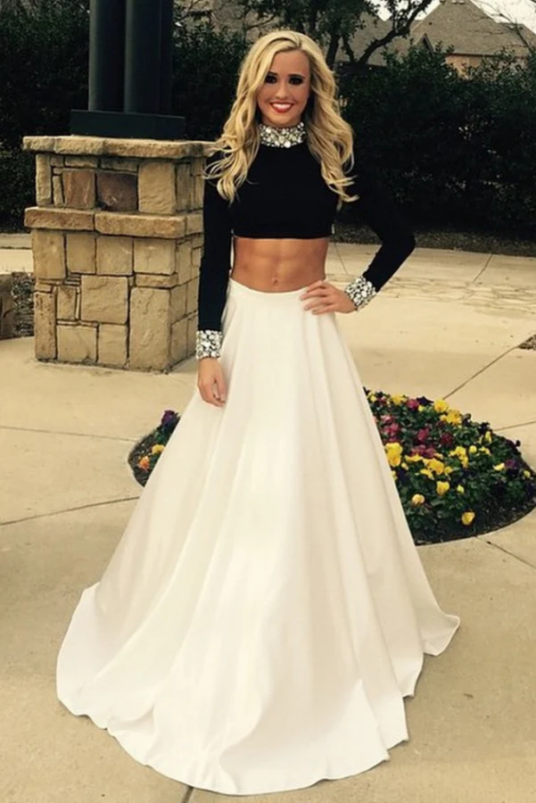 Black And White Two Pieces A-line Long Sleeves Prom Dress K708