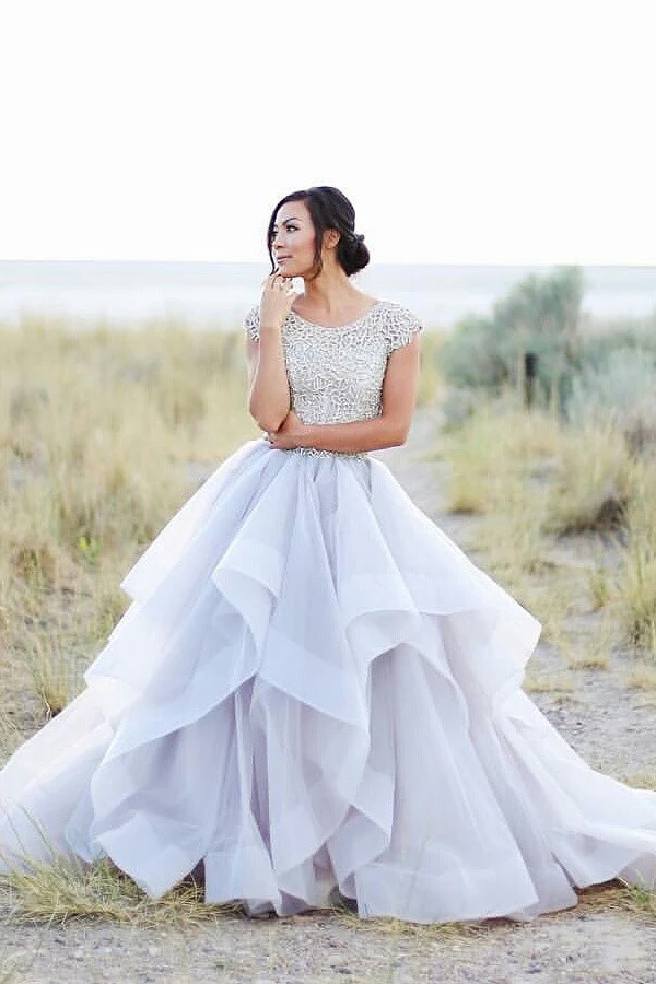 Cap Sleeve Lace Beading A-line Ball Gown Long Prom Dress K645
