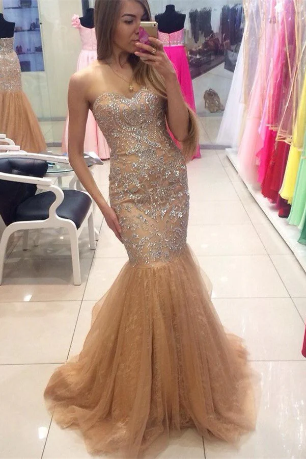 Gorgeous Mermaid Tulle Beading Sweetheart Lace Up Prom Dress K683