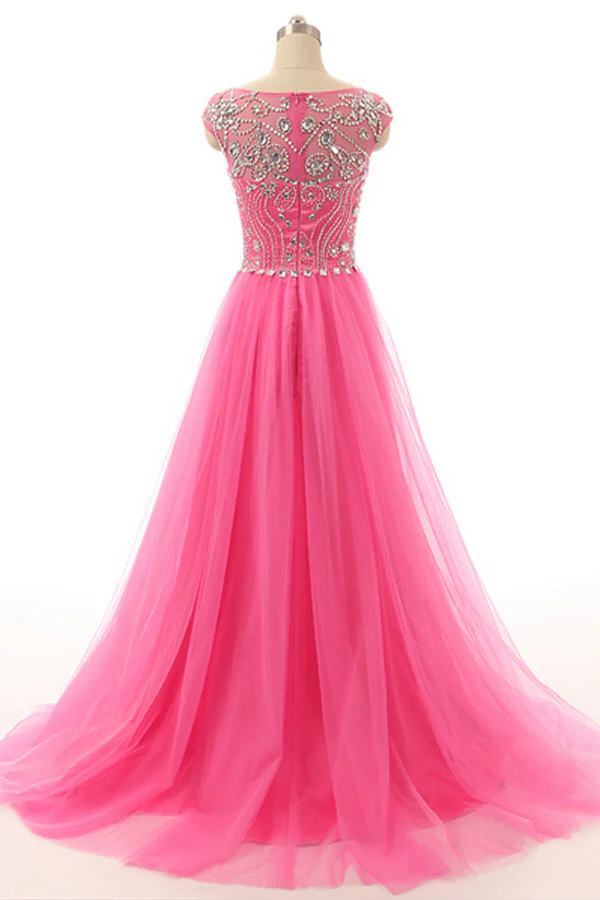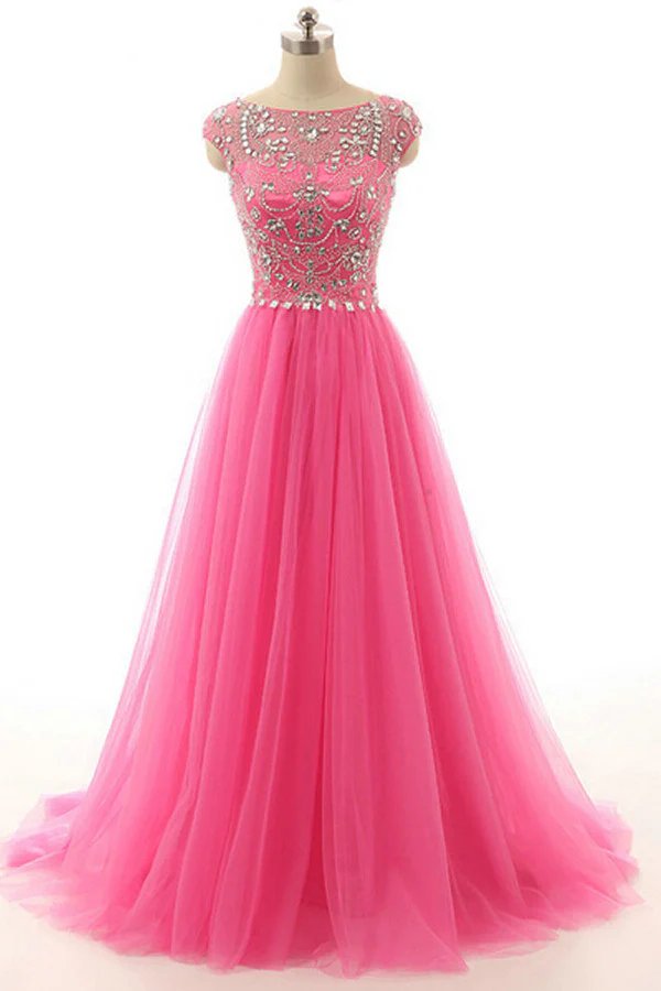 Hot Pink Beaded Long Zipper Modest Evening Prom Dress ED0958