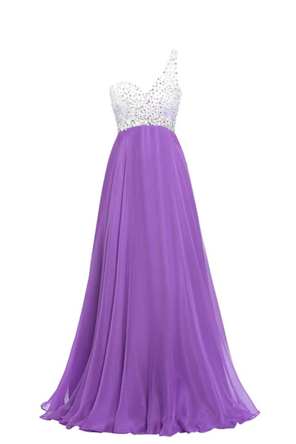 Purple One Shoulder Beaded Long Prom Dress ED0964