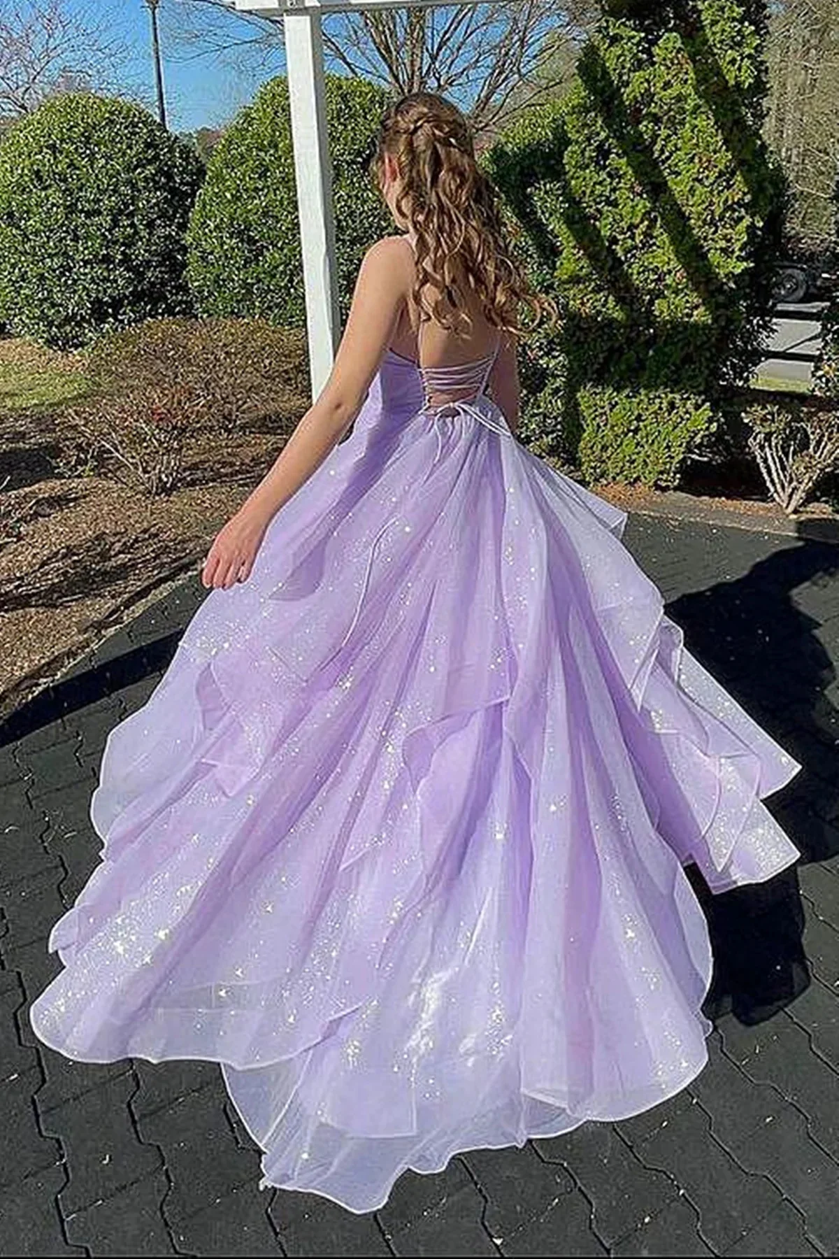 • Shiny V Neck Lilac Backless Long Prom Dresses, Formal Evening Dresses OK1918