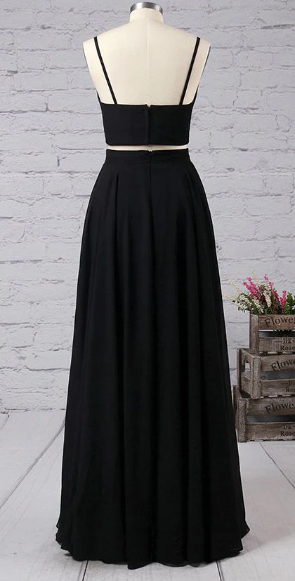 • Simple Black Two Pieces Long Cheap Modest Prom Dress Party Dresses K772