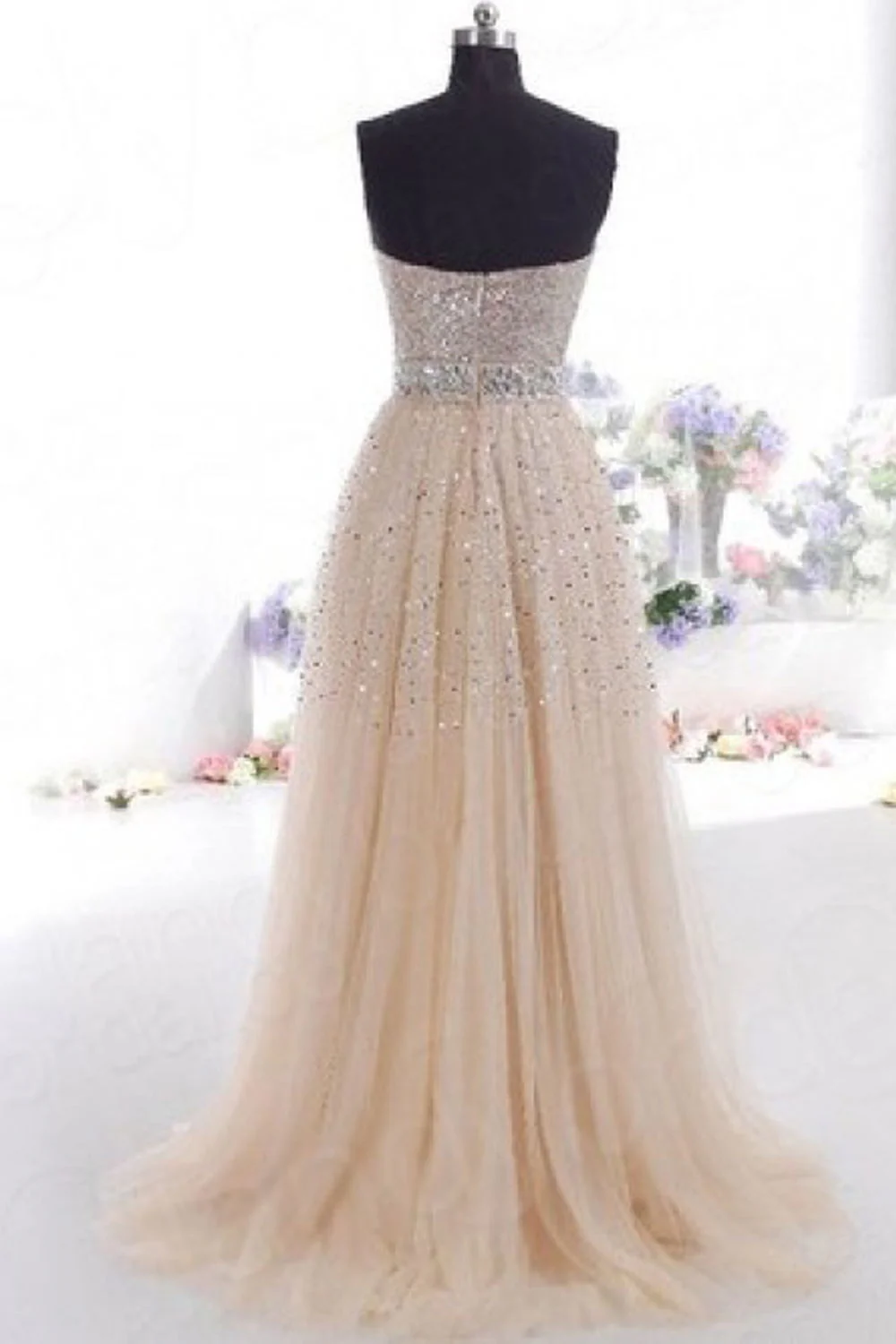 Strapless Long Tulle Beaded Charming Prom Dress K43